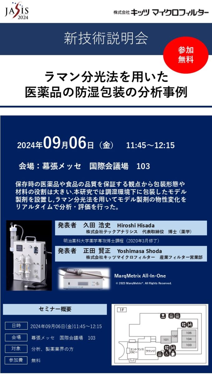 この度、株式会社キッツマイクロフィルターは9月4日(水)、5日(木)、6日(金)の3日間、幕張メッセ国際展示場にて開催されます『JASIS2024』に出展致します。