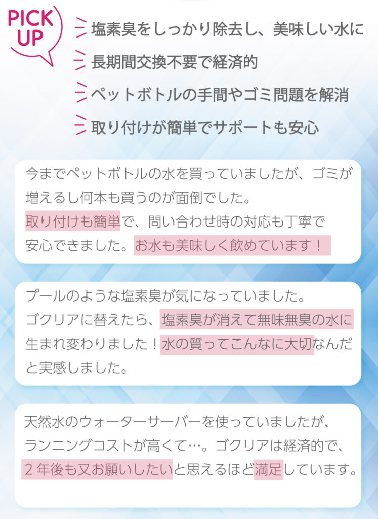 | 製品名 | 据置型浄水器 GOQURIA(ゴクリア) |